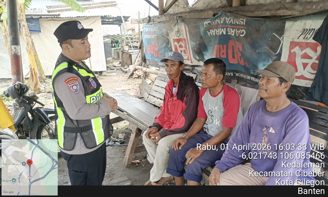 -POLRES CILEGON – Polda Banten. Kanit Reskrim Polsek Purwakarta, Polres Cilegon, Ipda Azis Wahyudin, bersama Ps.Kanit Propam Aipda Asep Saepudin dan Bhabinkamtibmas Kelurahan Ramanuju Bripka Anto Maulana, melaksanakan kegiatan patroli dialogis pada Kamis (16/4/2026). Kegiatan ini dilakukan untuk memantau situasi keamanan serta mempererat hubungan silaturahmi dengan masyarakat di wilayah hukum Polsek...