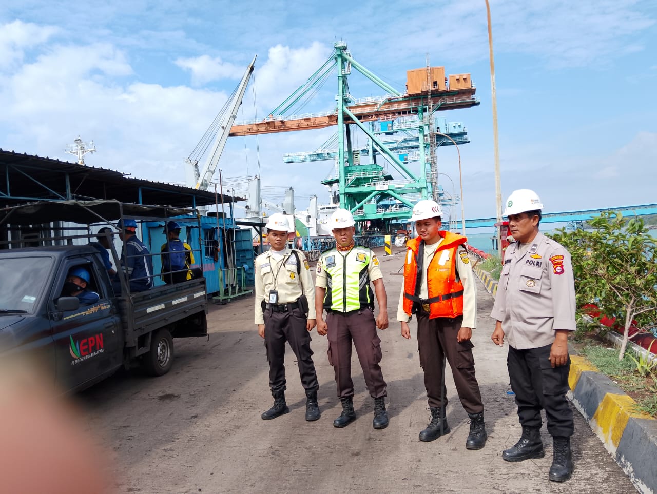 Jalin Silaturahmi, Personil Bhabinkamtibmas Polsek KP Banten berbincang dengan Buruh Pelabuhan