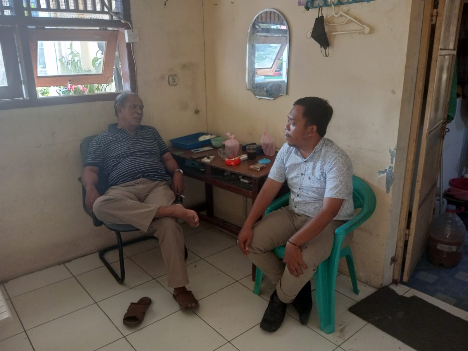 Personil sat intelkam melakukan koordinasi dengan tokoh pemuda kec. Anyar kabupaten serang