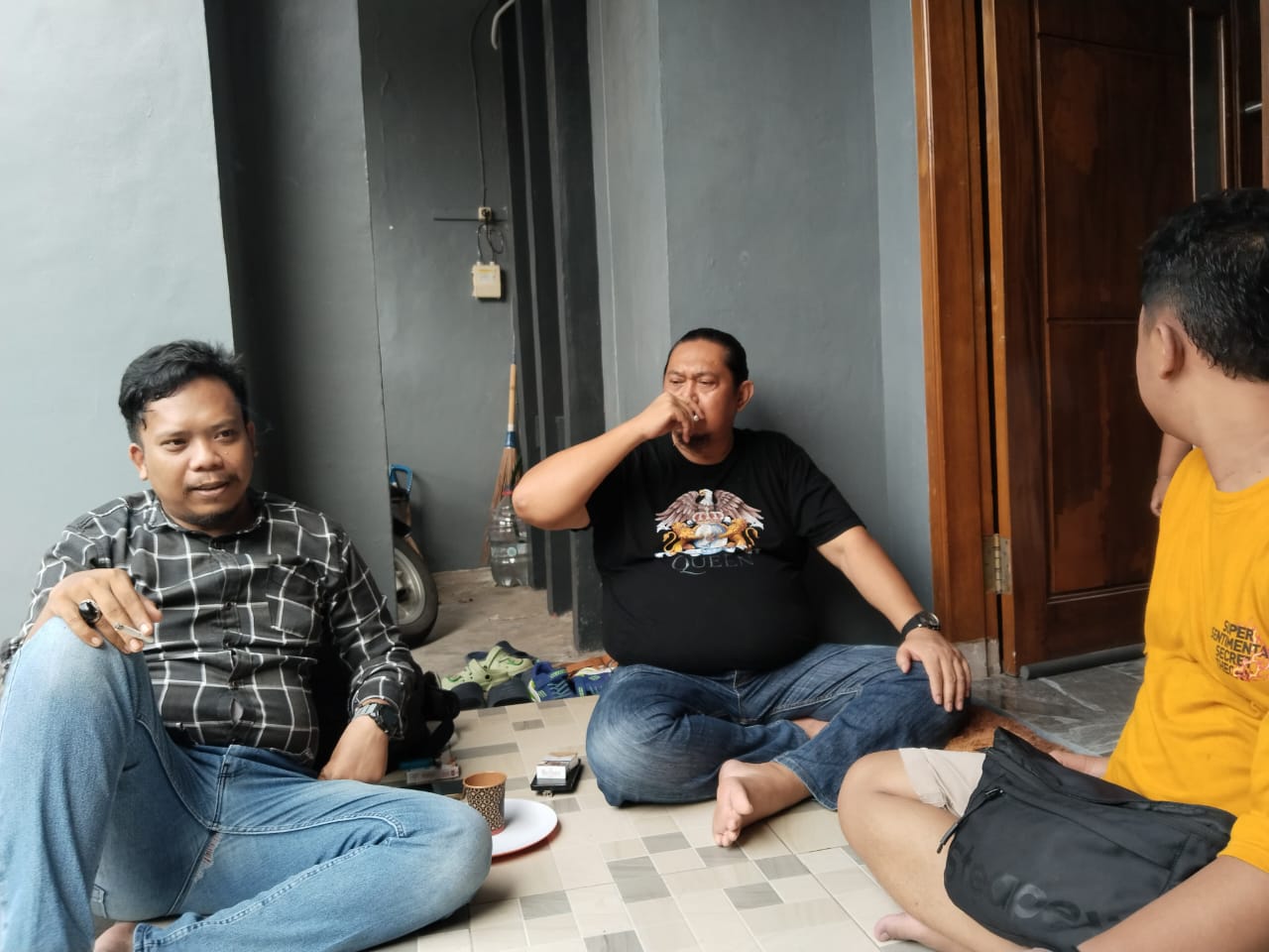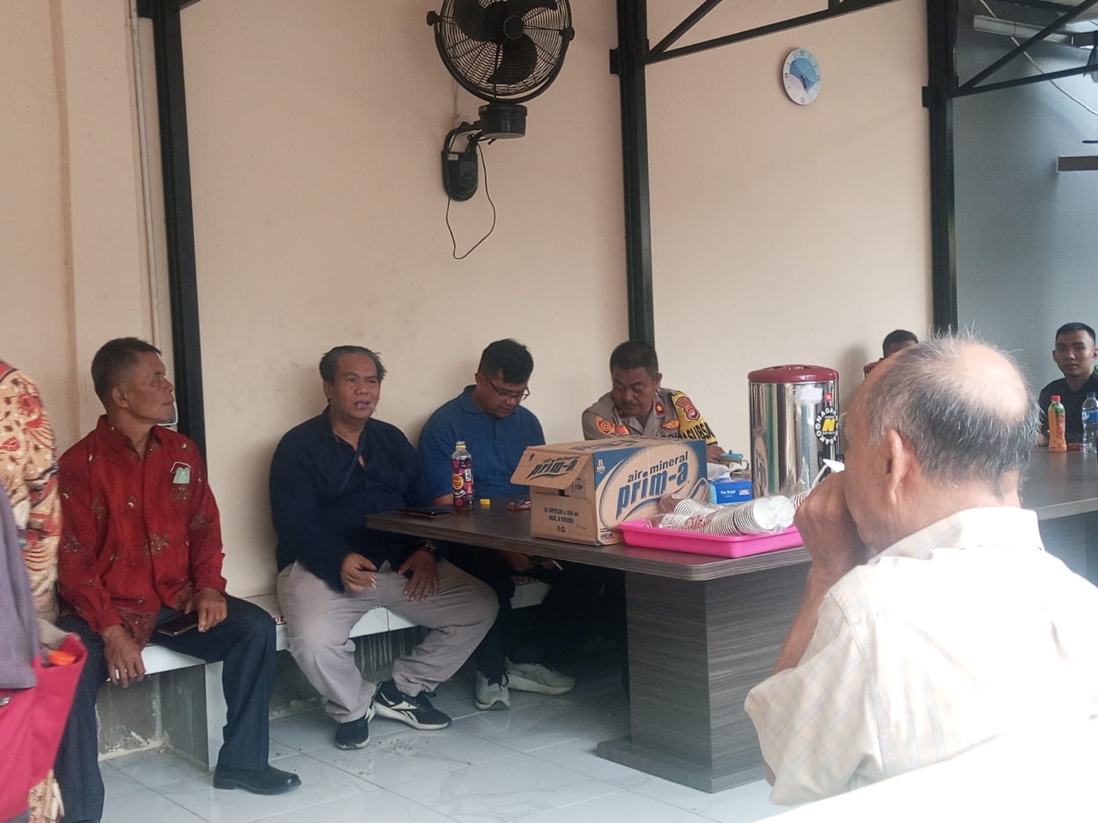 Personil sat intelkam melakukan koordinasi dengan tokoh masyarakat kec. Ciwandan kota cilegon.