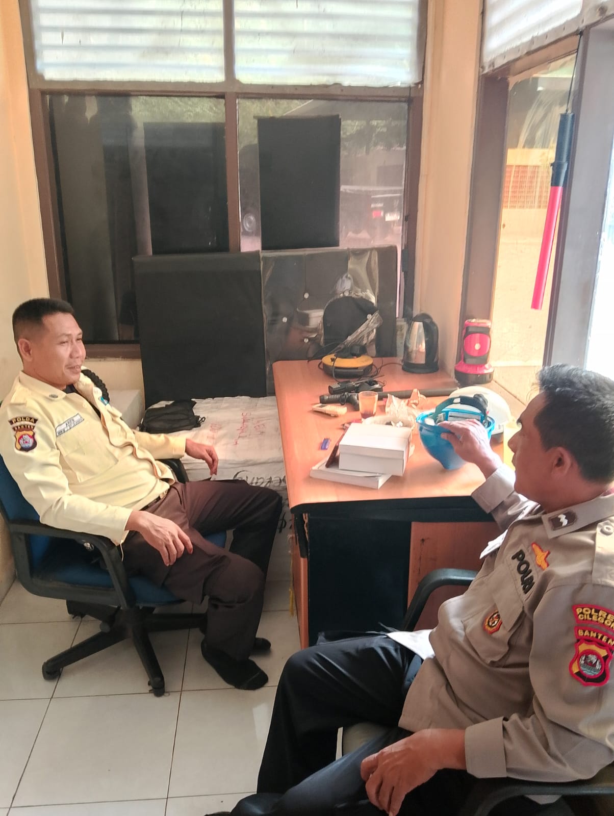 Personil Polsek Kskp Banten memberikan pengarahan dan pembinaan kepada anggota Security yang sedang melaksanakan tugas jaga, agar lebih meningkatkan Pengecekan dan Patroli dalam rangka memelihara Keamanan dan Ketertiban Masyarakat di lingkungannya.