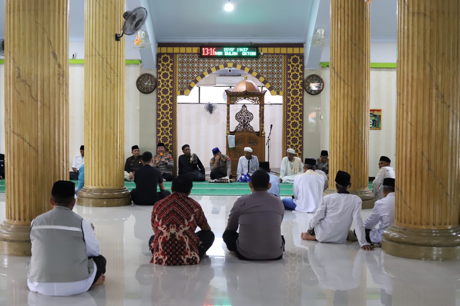 Rangkaian kegiatan diawali dengan pelaksanaan salat Jumat berjamaah. Usai salat, Kapolres Cilegon menyampaikan sambutan dan pesan kamtibmas kepada jamaah. Dalam arahannya, Kapolres menegaskan bahwa Jumat Keliling menjadi sarana penting bagi Polri untuk hadir langsung di tengah masyarakat, memperkuat hubungan emosional, serta menyerap informasi dan aspirasi warga secara langsung.