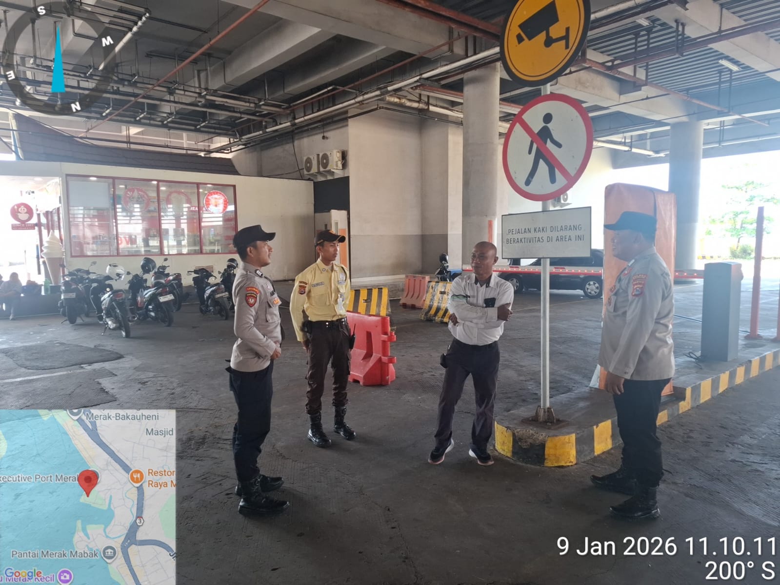\Cilegon - Personel Polsek Kskp Merak Polres Cilegon Polda Banten melaksanakan sambang dan patroli kawasan pelabuhan merak dalam rangka menjaga Harkamtibmas di Kawasan Pelabuhan Merak, Jumat (09/01/2026).