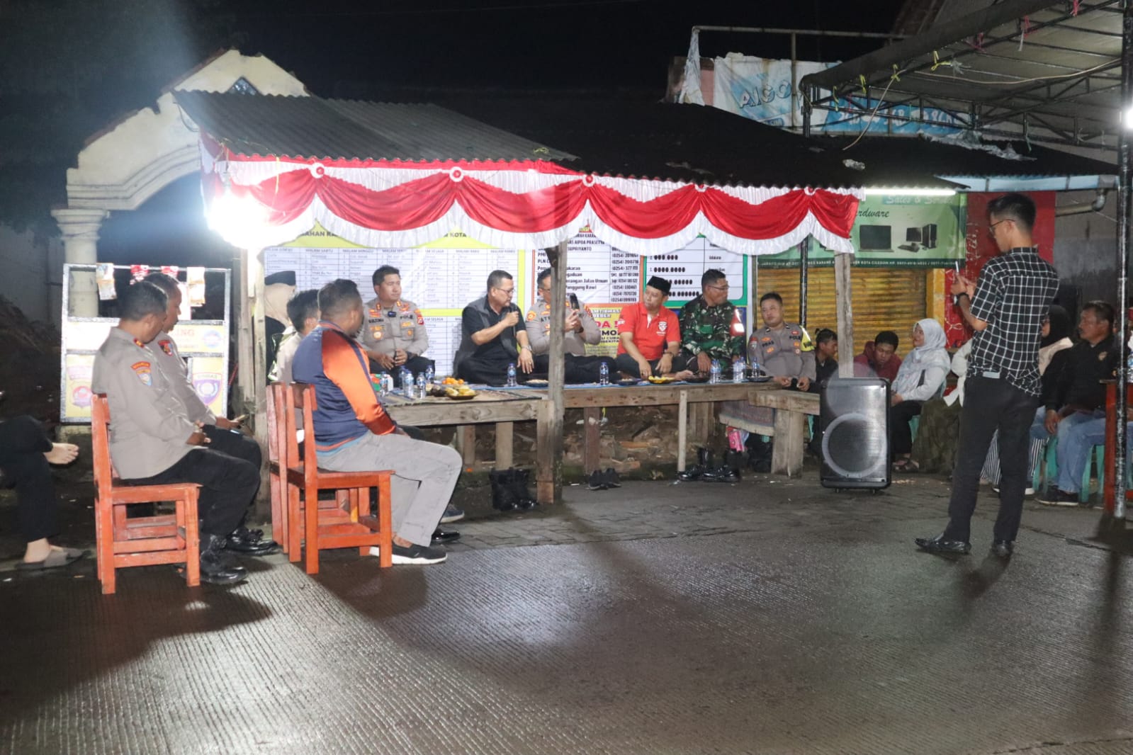 Kegiatan yang berlangsung sekitar pukul 22.16 WIB tersebut dihadiri langsung Kapolres Cilegon bersama jajaran pejabat utama Polres Cilegon, di antaranya Kabag Ops AKP Choirul Anam, S.H., M.H., M.Si., Kasat Binmas IPTU Muhyiddin, S.H., Kasie Propam AKP Herry Susanto, S.H., M.M., serta Kasat Lantas AKP Ridwan, S.T.K., S.I.K., M.H. Turut mendampingi Kapolsek Cibeber AKP Atep Mulyana, S.H., M.Si. bersama jajaran fungsi pembinaan dan Bhabinkamtibmas.