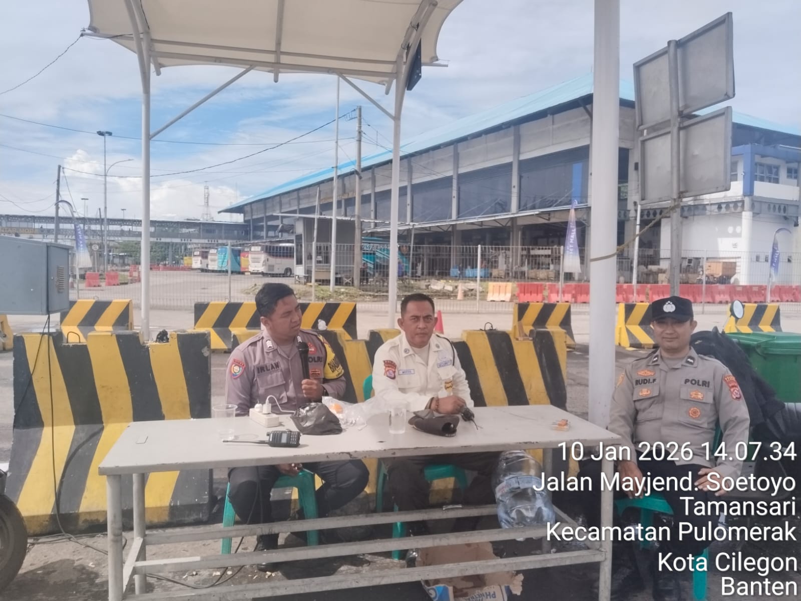 Cilegon - Personel Polsek Kskp Merak Polres Cilegon Polda Banten melaksanakan sambang dan patroli kawasan pelabuhan merak dalam rangka menjaga Harkamtibmas di Kawasan Pelabuhan Merak, Sabtu (10/01/2026).