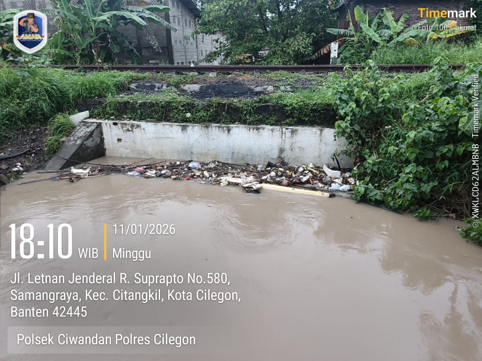 Kapolres Cilegon Polda Banten AKBP Dr. Martua Raja Taripar Laut Silitonga melalui Kapolsek ciwandan Kompol Andi Suherman mengatakan bahwa atas perintahnya kepada seluruh Babinkamtibmas jajaran Polsek ciwandan agar mengantisipasi cuaca yang akhir-akhir ini sering turun hujan lebat dan mengecek debit air aliran sungai yang ada di lingkungan binaan masing-masing
