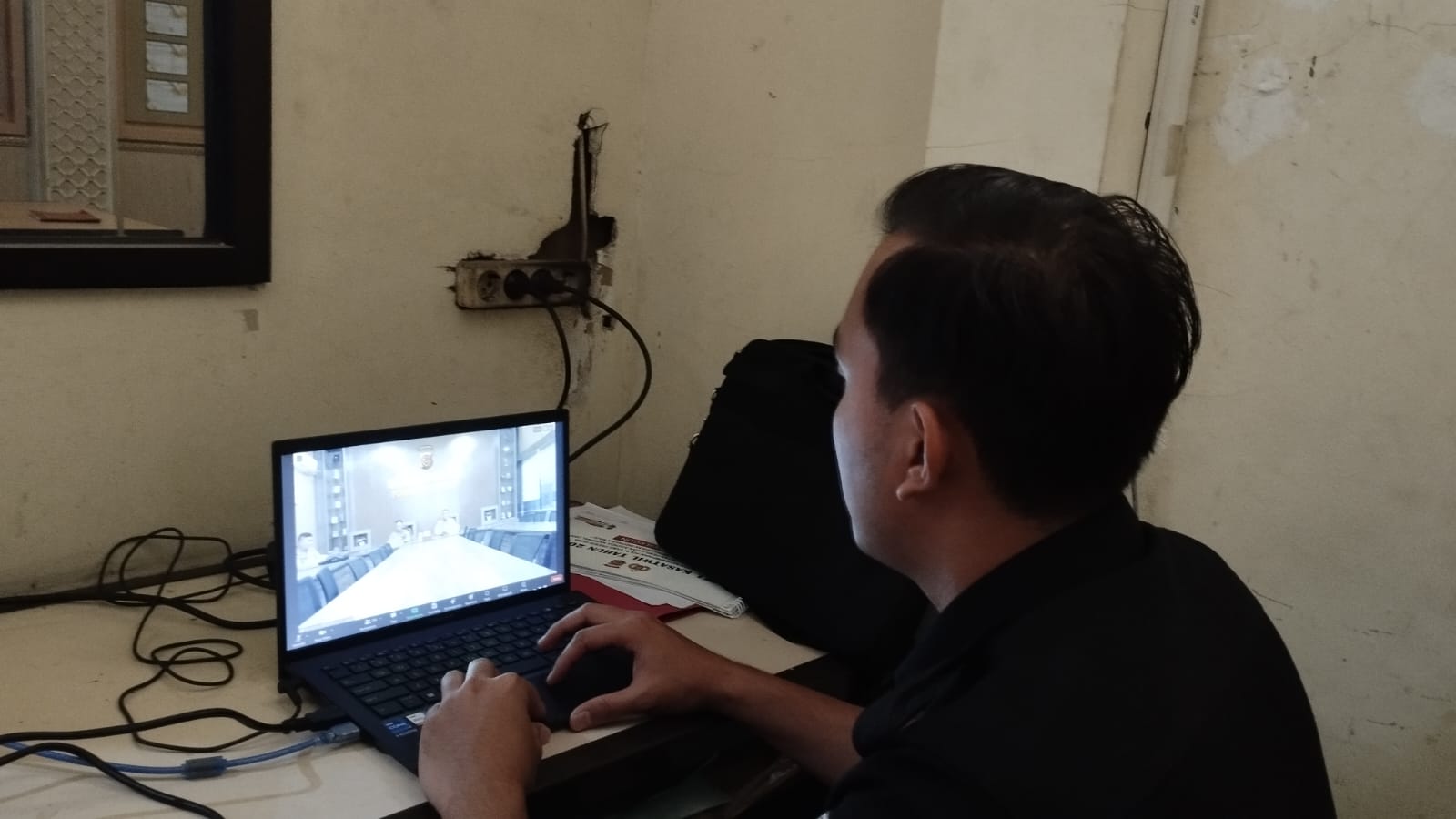 Anggota Tik Polres Cilegon Menyiapkan Sarana dan Prasarana Untuk Kegiatan Zoom meeting Dalam pelaksanaan kegiatan zoom meeting tersebut anggota TIK Polres Cilegon yang bertanggung jawab untuk menyiapkan peralatan zoom. Selain itu agar di tidak ada gangguan jaringan sebelum pelaksanaan anggota TIK melakukan pemeriksaan terhadap sarana dan prasarana tersebut . Satu jam sebelum kegiatan zoom meeting itu dimulai. Kapolres Cilegon AKBP. DR. MARTUA RAJA TARIPAR LAUT SILITONGA. melalui Kasi TIK AIPTU Suwanto, S.H. menyampaikan bahwa “untuk menunjang kelancaran penyampaian informasi anggota TIk Polres Cilegon selalu memeriksa sarana dan prasarana tersebut, sebelum maupun pada saat pelaksanaan akan selalu di monitor”