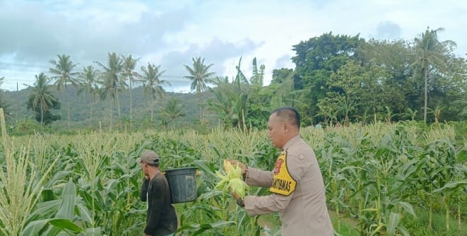 DUKUNG KETAHANAN PANGAN, BHABINKAMTIBMAS AKTIF DAMPINGI PROGRAM SWASEMBADA JAGUNG