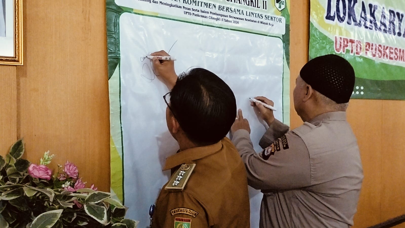 Cilegon - Wakapolsek Ciwandan Polres Cilegon Polda Banten AKP Uup M. Ma'ruf Bersama Personil Bhabinkamtibmas Polsek Ciwandan menghadiri kegiatan Lokakarya mini Lintas Sektor Bidang Kesehatan UPTD Puskesmas Citangkil 2 Tahun 2025 Di Aula Kantor Kecamatan Citangkil,Selasa (10/02/2026).
