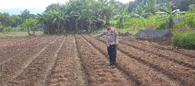 Personil Bhabinkamtibmas Kelurahan Kotabumi melakukan Pendampingan dan Cek Tanaman jagung Guna Mendukung program ketahanan pangan