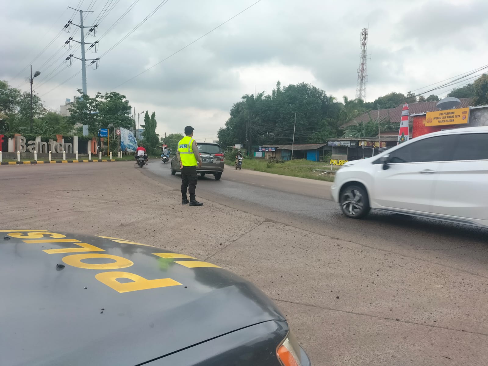 Kapolres Cilegon AKBP Martua Raja Taripar Laut Silitonga Melalui Kapolsek Kskp Banten Polres Cilegon AKP Fredo Leonard menyampaikan Laksanakan Pengamanan Sesuai plotinganya lakukan Pengaturan Supaya Arus Lalu Lintas tetap Berjalan lancar dan Pastikan tidak ada hambatan.