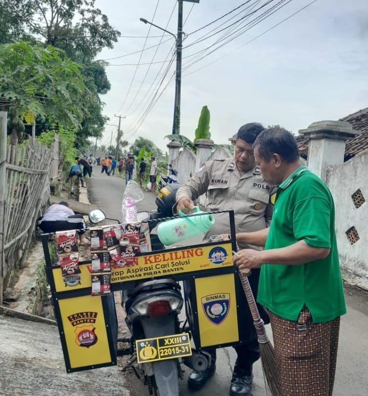 -Polres Cilegon-Polda Banten. Minggu 15 Februari 2026 – Aiptu Wawan Setiabudi, Bhabinkamtibmas wilayah Blacu, Kelurahan Tegalbunder, Kecamatan Purwakarta Kota, Kota Cilegon, bersama masyarakat melaksanakan kegiatan gotong royong dan memberikan pelayanan kepolisian melalui program "Kopi Bhabinkamtibmas" keliling. Kegiatan ini menjadi salah satu upaya menjalin hubungan erat dan silaturahmi antara petugas kepolisian dengan warga masyarakat.