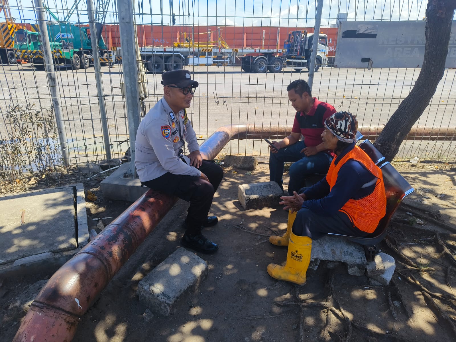 Dekat dengan Masyarakat, Bhabinkamtibmas Polsek KSKP Banten Berbincang dengan Buruh Pelabuhan
