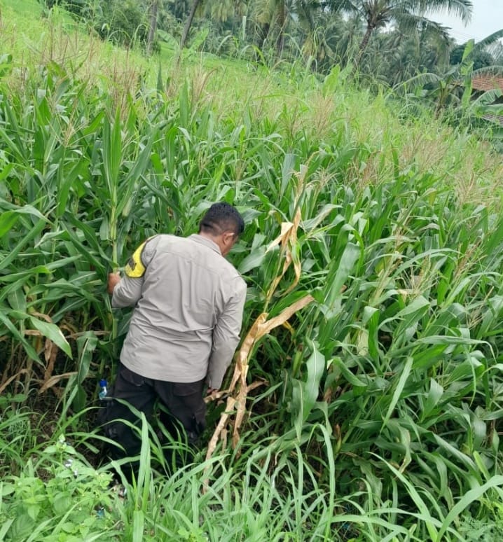 POLSEK PURWAKARTA LAKUKAN PENGECEKAN TANAMAN JAGUNG DI DALIRAN