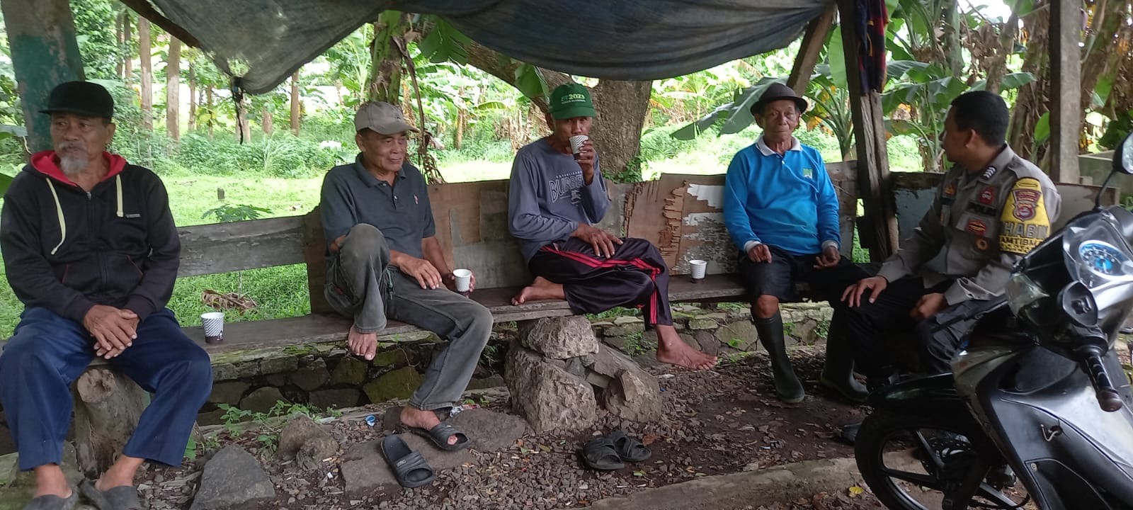 Bhabinkamtibmas Kelurahan Kotabumi, Lingkungan Leuweungsawo, Bripka Agustoni dari Polsek Purwakarta Polres Cilegon menggelar kegiatan silaturahmi dan penyampaian himbauan kamtibmas secara langsung kepada warga setempat.