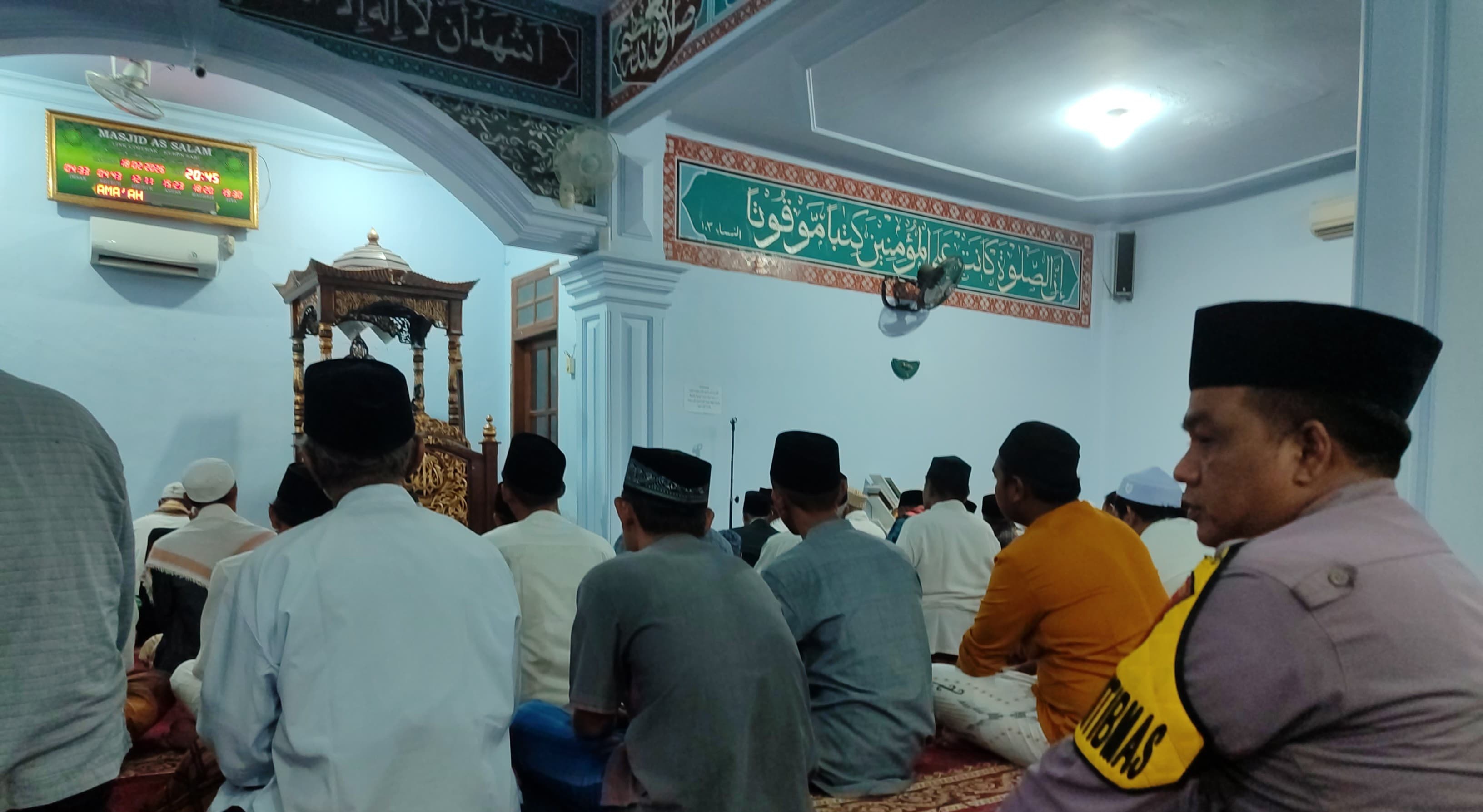 Bhabinkamtibmas Polsek Ciwandan Sholat Tarawih Berjama’ah Bertempat Dimasjid Lingkungan Binaannya.