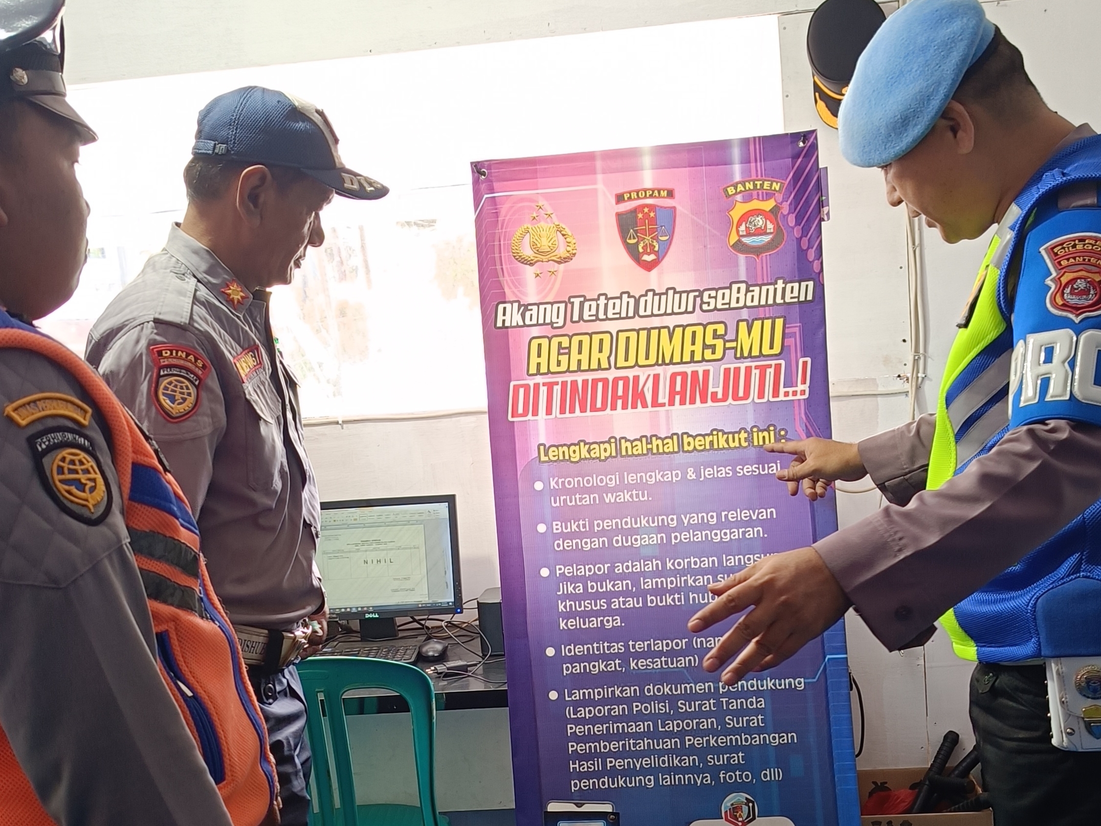 Kali ini personil Polsek Pulomerak laksanakan giat sosialisasi tentang DUMAS Kepada masyarakat/intansi samping juga sekaligus monitor kegiatan masyarakat guna menjaga harkamtibmas tetap terjaga dan lancarnya acara, tutur Ambar