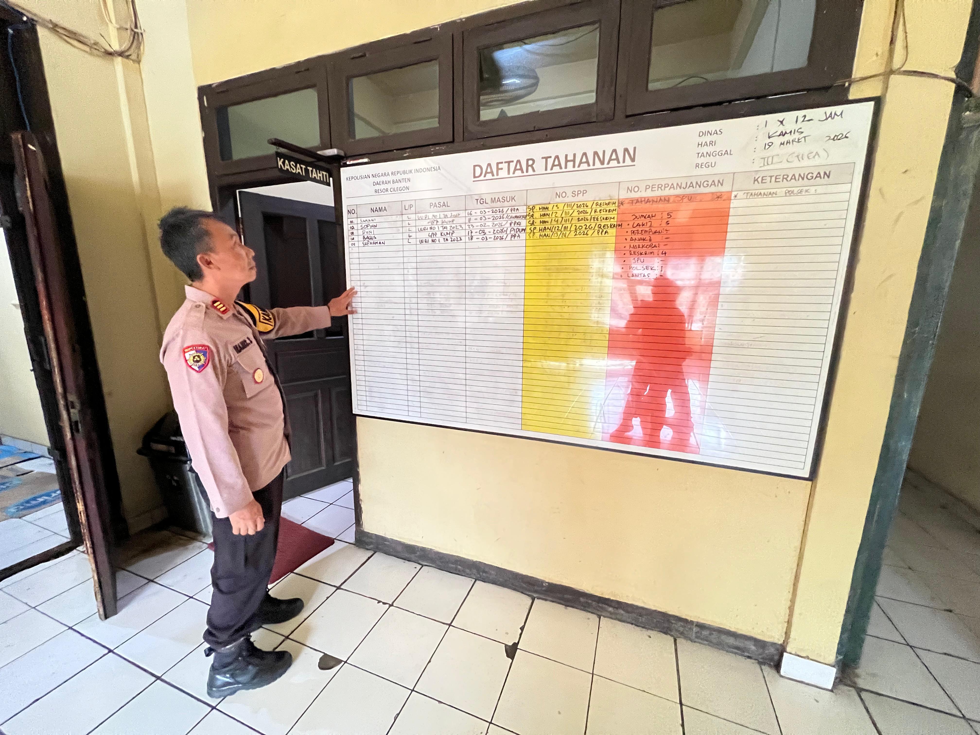 kasiwas polres cilegon lakukan pengechekan terhadap jumlah tahanan