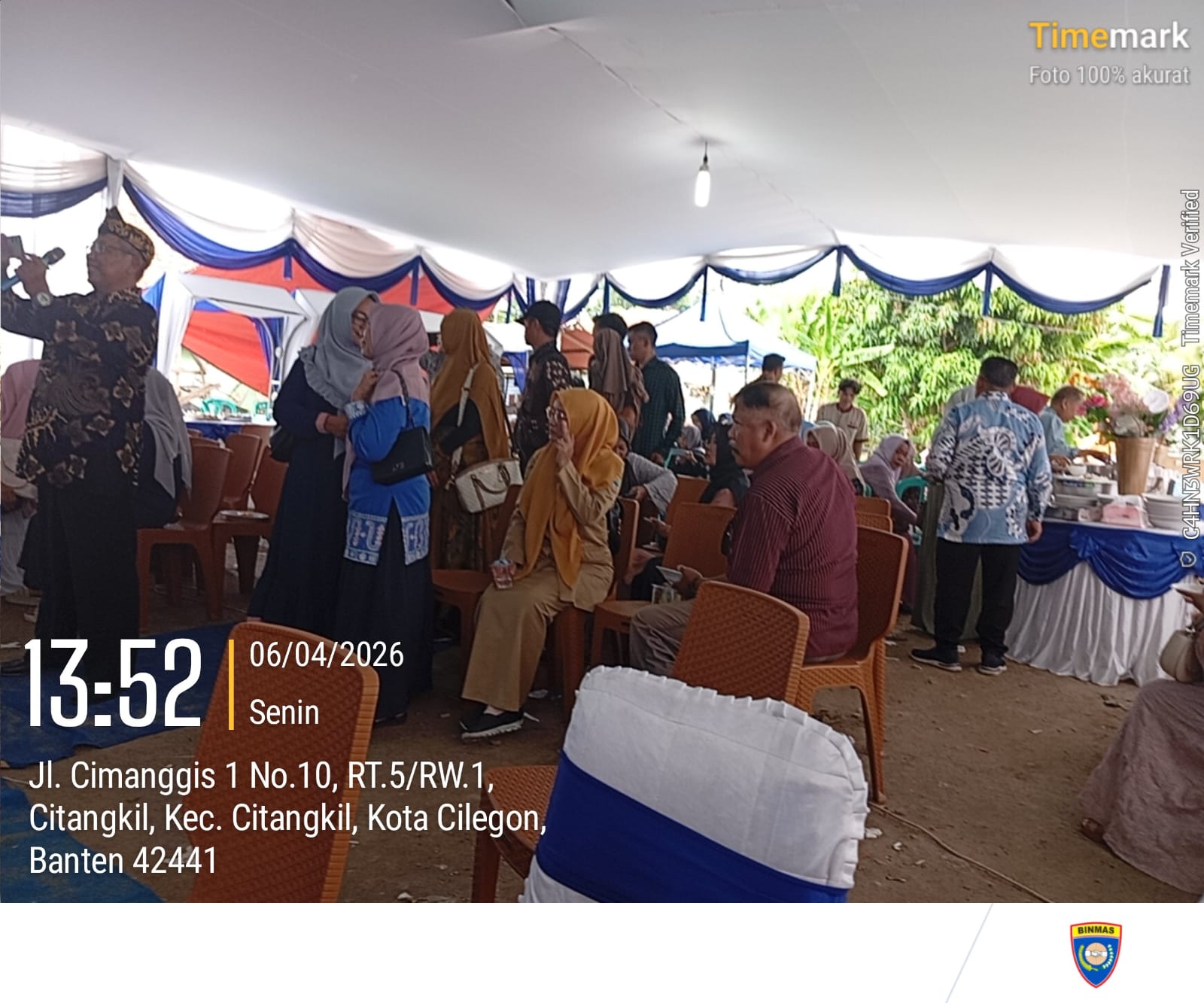 Cilegon - Bhabinkamtibmas Polsek Ciwandan Polres Cilegon Polda Banten melaksanakan Kegiatan Kondangan/Undangan ini bertujuan untuk memastikan acara berlangsung dengan aman dan tertib, serta memberikan rasa aman kepada warga yang menghadiri resepsi pernikahan tersebut, Senin (06/04/2026).