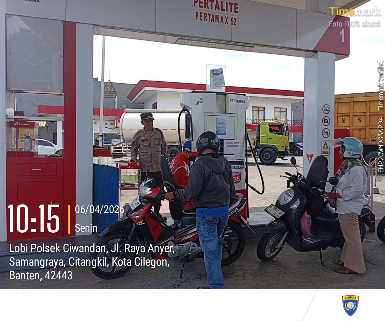 Pukul 21.00 WIB, personel piket Polsek Ciwandan yang dipimpin oleh Aiptu Yudi Setiawan dan Brigpol Muhamad Sofyan Iskandar, melakukan monitoring stok BBM di tiga SPBU di wilayah Ciwandan, yaitu SPBU 34.424.11 Kerenceng-Warnasari, SPBU 34.424.03 Cigading-Tegal Ratu, dan SPBU 34.424.12 Cilurah (JLS) - Kepuh.