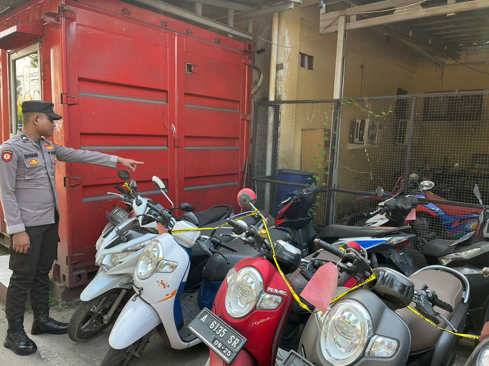 Cilegon, Polres Cilegon Polda Banten. Di gudang barang bukti Polres Cilegon. Anggota SatTahti polres cilegon mengecek barang bukti. (09/04/2026)