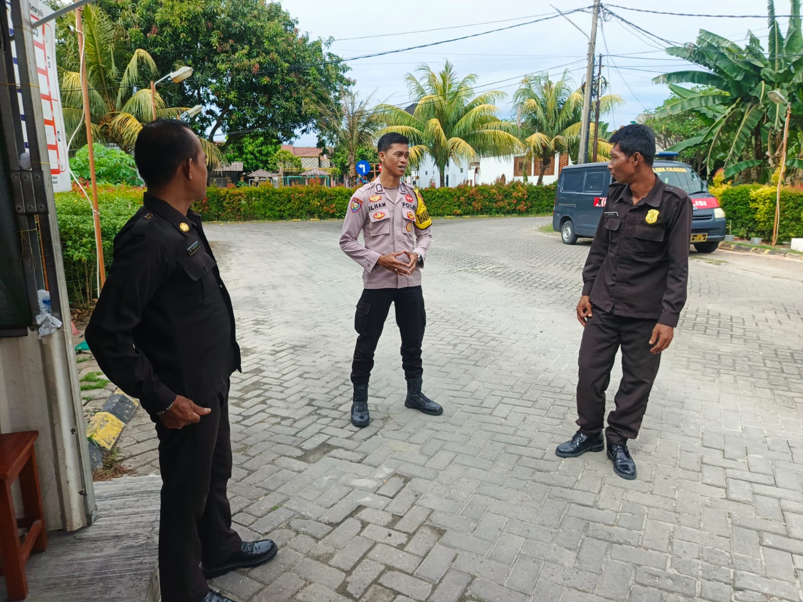 Polres Cilegon Trending, Personil Polsek Cilegon sambangi Security berikan himbauan kamtibmas.