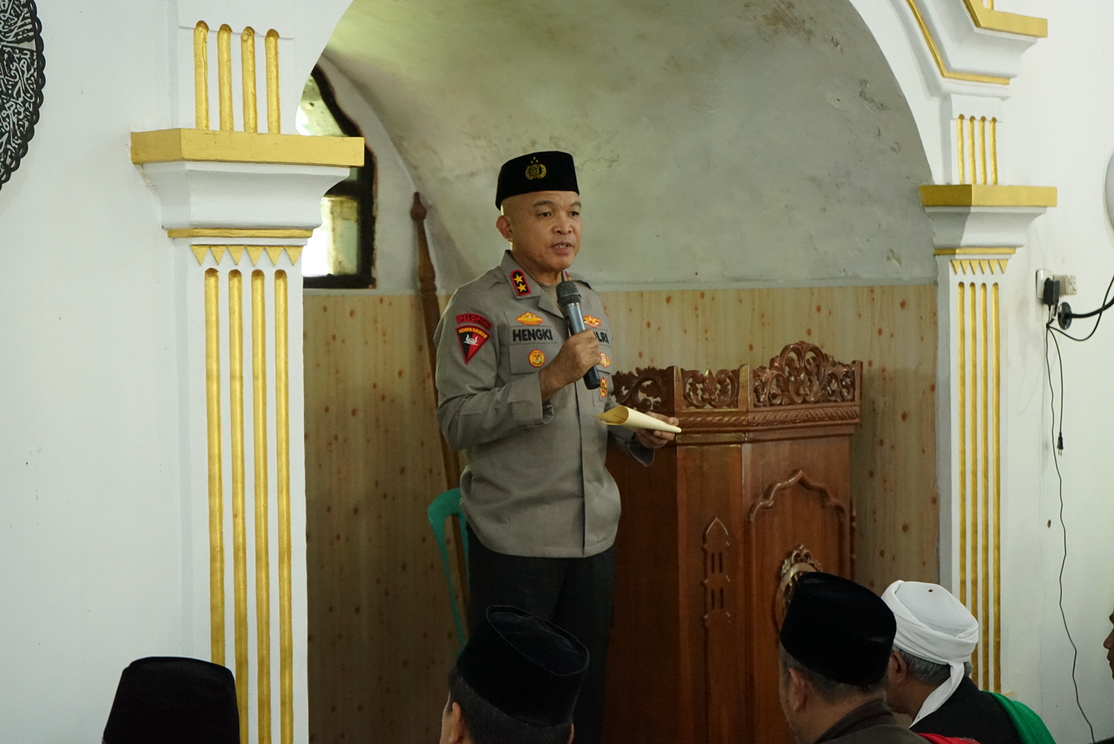 Cilegon –Kapolres Cilegon AKBP Dr Martua Raja Taripar Laut Silitonga S.H S.IK M.S.I mendampingi Kapolda Banten Irjen Pol Hengki S.IK,M.H melaksanakan kegiatan Salat Jumat Keliling (Jumling) di Masjid Miftahul Huda, Pondok Pesantren TQN Al-Mubarok, Kampung Pasir Angin, Desa Cinangka, Kecamatan Cinangka, Kabupaten Serang ,Jumat 10/4/26 Kegiatan tersebut diikuti oleh para Pejabat Utama Polda Banten dan pejabat utama Polres Cilegon, tokoh agama, tokoh masyarakat, serta para jamaah salat Jumat. Dalam kesempatan tersebut, Kapolda Banten menyampaikan bahwa program Salat Jumat Keliling merupakan salah satu upaya Polri untuk lebih mendekatkan diri dengan masyarakat sekaligus mempererat silaturahmi. “Program Salat Jumat Keliling ini merupakan ikhtiar kami untuk mempererat silaturahmi dan menghadirkan Polri di tengah masyarakat, tidak hanya dalam tugas, tetapi juga berbagi rasa dalam suka dan duka,” ujar Kapolda Banten. Kapolda Banten juga menyampaikan bahwa situasi kamtibmas di wilayah Banten saat ini dalam keadaan aman dan kondusif. “Alhamdulillah, situasi kamtibmas di Banten saat ini aman dan kondusif, sehingga masyarakat dapat melaksanakan ibadah dengan tenang,” lanjutnya. Selain itu, Kapolda Banten mengingatkan bahwa ke depan tantangan kamtibmas akan semakin kompleks seiring perkembangan teknologi dan informasi. “Kami menghimbau masyarakat agar waspada terhadap penyebaran hoaks, ujaran kebencian, provokasi isu SARA, kejahatan berbasis teknologi, serta penyalahgunaan narkoba,” tegasnya. Lebih lanjut, Kapolda turut mengajak masyarakat untuk tidak mudah terprovokasi dan lebih bijak dalam menggunakan media sosial, serta menjaga persatuan dan kerukunan. “Mari kita bersama-sama menjaga persatuan dan meningkatkan toleransi antar umat beragama demi terciptanya situasi yang aman dan damai,” tambahnya. Diakhir, Kapolda Banten mengajak masyarakat untuk memanfaatkan layanan kepolisian. “Saya mengajak seluruh masyarakat untuk memanfaatkan layanan kepolisian, salah satunya layanan Call Center 110 yang aktif 24 jam secara gratis. Melalui layanan ini, masyarakat dapat dengan mudah melaporkan setiap gangguan kamtibmas maupun kejadian yang membutuhkan kehadiran polisi, sehingga dapat segera ditindaklanjuti secara cepat, tepat oleh petugas,” tutup Kapolda Banten. Hadir dalam kegiatan tersebut untuk.pejabat utama Polda Banten 1). Dirreskrimum Polda Banten KOMBES POL. DIAN SETYAWAN, S.H., S.I.K., M.Hum 2). Dirbinmas Polda Banten KOMBES POL IMAM TARMUDI, S.I.K., M.H. 3). Dirlantas Polda Banten Kombes Pol. Arief Kurniawan, S.I.K. 4). Kabid Humas Polda Banten KOMBES POL. Maruli Ahiles Hutapea, S.I.K. 5). Kabid Propam Polda Banten KOMBES POL. MURWOTO, S.H., S.I.K., M.H. 6). Dirintel Polda Banten KOMBES POL. ATOT IRAWAN, S.I.K., M.M 8). Kapolres Cilegon AKBP Dr. MARTUA RAJA TARIPAR LAUT SILITONGA, S.H, S.Ik, M.Si. Pejabat Utama Polres Cilegon 1). Wakapolres Cilegon KOMPOL M. RIZKI SALATUN, S.IK. 2). Kabag SDM Polres Cilegon KOMPOL ENTANG CAHYADI, S.H., M.A 3). Kabaglog Polres Cilegon AKP SUDIBYO WARDOYO, S.H, M.M 4). Kasat Sabhara Polres Cilegon AKP AGUS HENDRATNO 5). Kasat Lantas Polres Cilegon AKP RIDWAN S.TK., S.I.K., M.H 6). Kasi Humas Polres Cilegon AKP SIGIT DERMAWAN, S.H. 7). Kasie Propam Polres Cilegon AKP HERI SUSANTO, S.H, M.M. 8). Kapolsek Cinangka AKP RUSNATA, S.H., S.KOM. 9). Kasiwas Polres Cilegon IPTU HARIS SURAHMAN 10). Kasat Intelkam Polres Cilegon IPTU RISWAN WIJAYA, S.H Tokoh masyarakat 1). Pimpinan Ponpes TQN Al Mubarok KH.RD.M.YUSUF PRIANADI,SH 2). Tokoh Agama Pimpinan Ponpes Nur Sejati KH.DAMANHURI 3). Ketua DPC NU Kec.Cinangka USTADZ.DAMAN