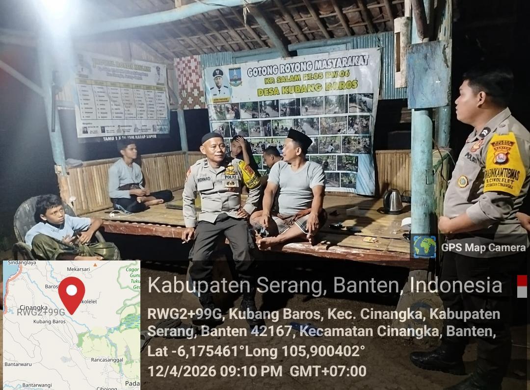 Kapolres Cilegon Polda Banten AKBP Martua Raja Taripar Laut Silitonga melalui Kapolsek Cinangka Polda Banten IPTU Rusnata menjelaskan dalam menjaga kemanan dan akuntansi lingkungan kami terus tingkatkan kegiatan Patroli menciptakan Rasa aman dengan hadir di tengah tengah masyarakat sehingga dapat meminalisir gangguan Kamtibmas serta menyampaikan Pesan-pesan Kamtibmas Kepada petugas yg melaksanakan kegiatan siskamling di lingkungannya masing-masing.