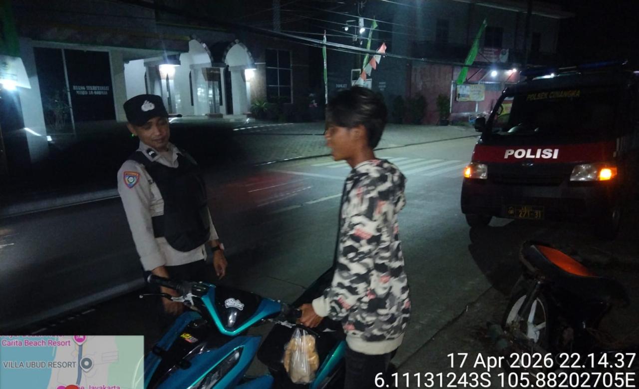 *Cilegon* – Dalam Rangka Pencegahan Kejahatan Jalanan dan Memelihara situasi keamanan dan menjaga serta memberikan rasa aman dan nyaman di masyarakat,Salah satu upaya untuk mewujudkan hal tersebut sebagaimana yang dilakukan oleh Personil Polsek Cinangka Polres Cilegon Polda Banten melaksanakan giat patroli blue light malam hari hingga menjelang pagi, Sabtu (18/04/2026).