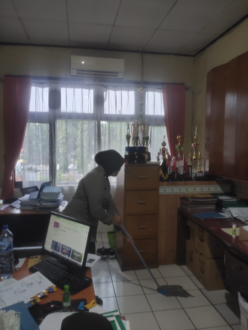 anggota SDM Polres Cilegon, dalam Pelaksanaan menjaga kebbersihan ruangan kerja setiap saat.